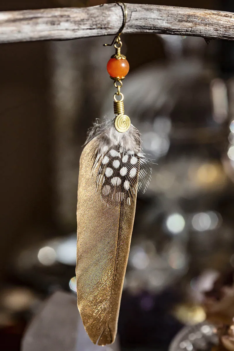 Indiánská náušnice s peříčkem a karneolem