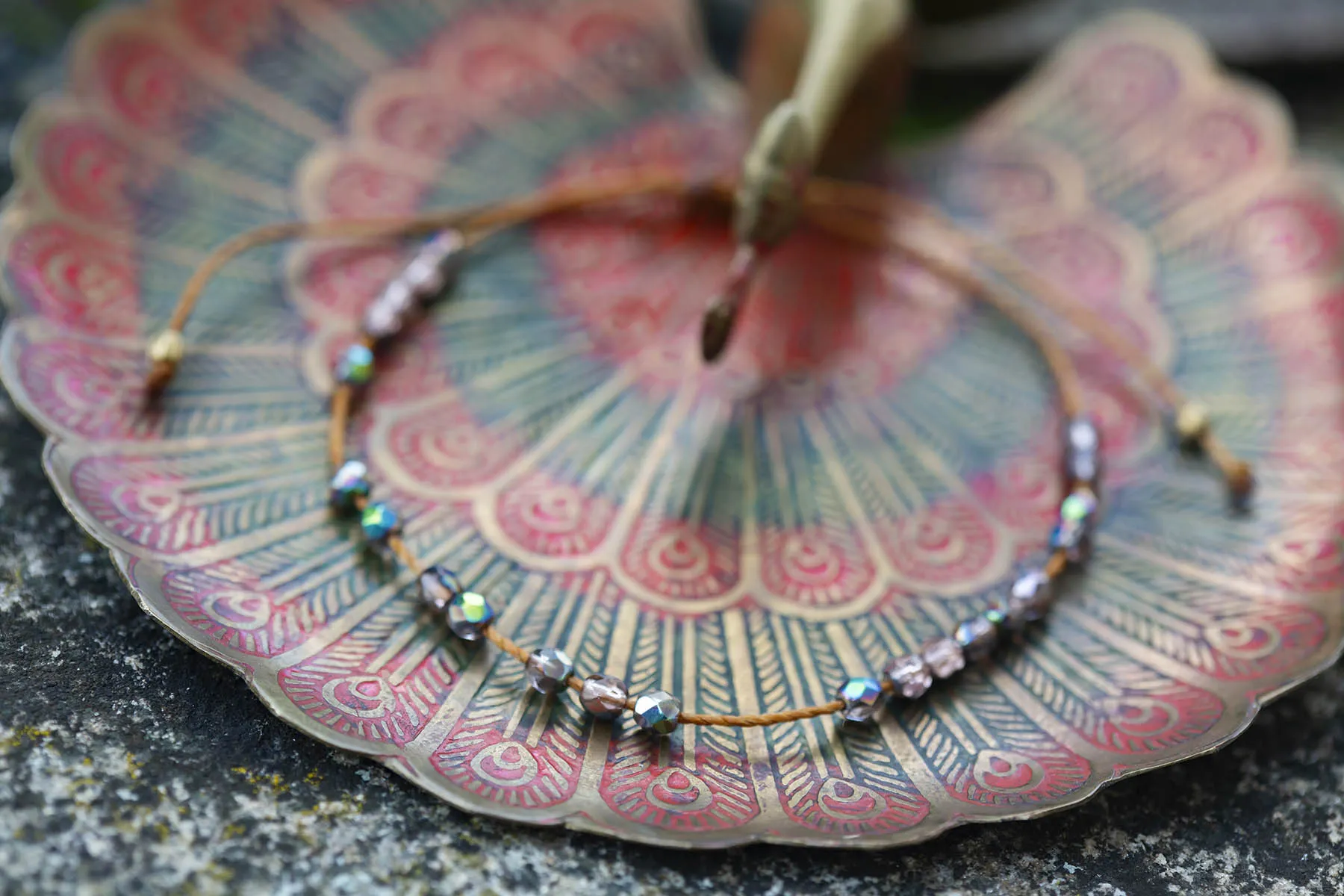 Délka nastavitelná pomocí macramé zámečku.