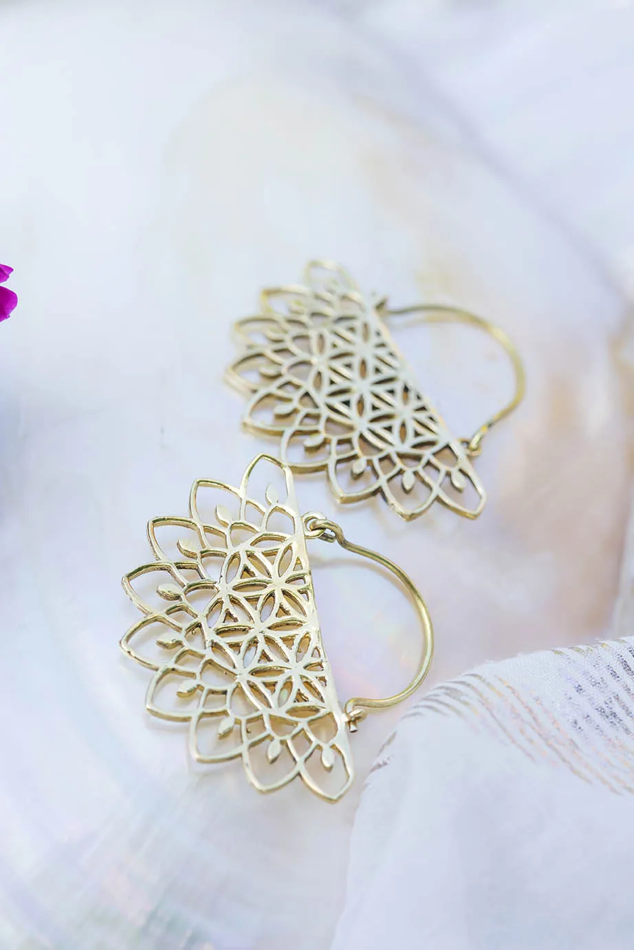 Krásné náušnice květ života ve dvou provedeních. Mosaz (zlatá barva) a Mosaz s alpakou (stříbrná barva).