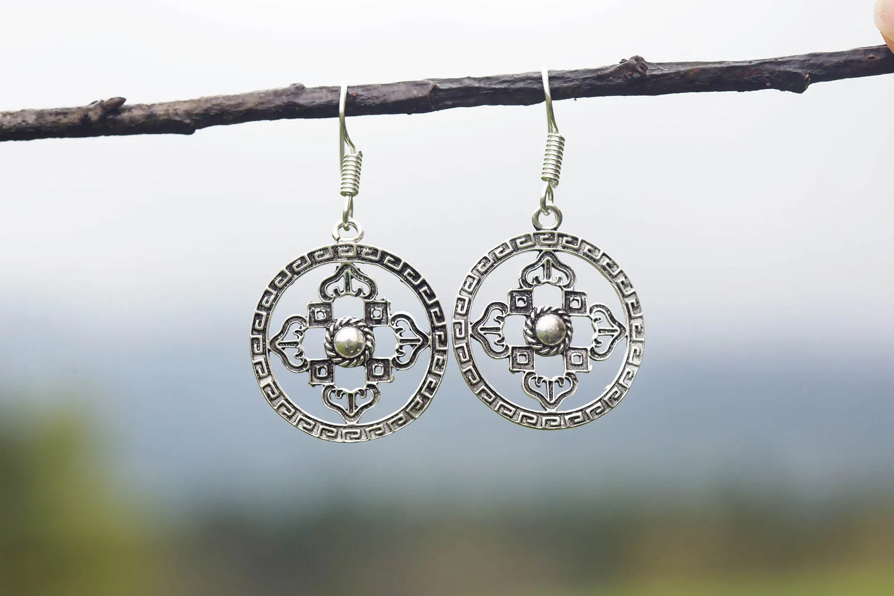 Překrásné náušnice z bílého kovu se symbolem dordže.