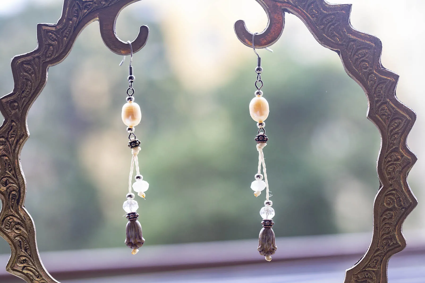 Překrásné náušnice Indiánka mají říční perlu a skleněné korálky od českých sklářů.