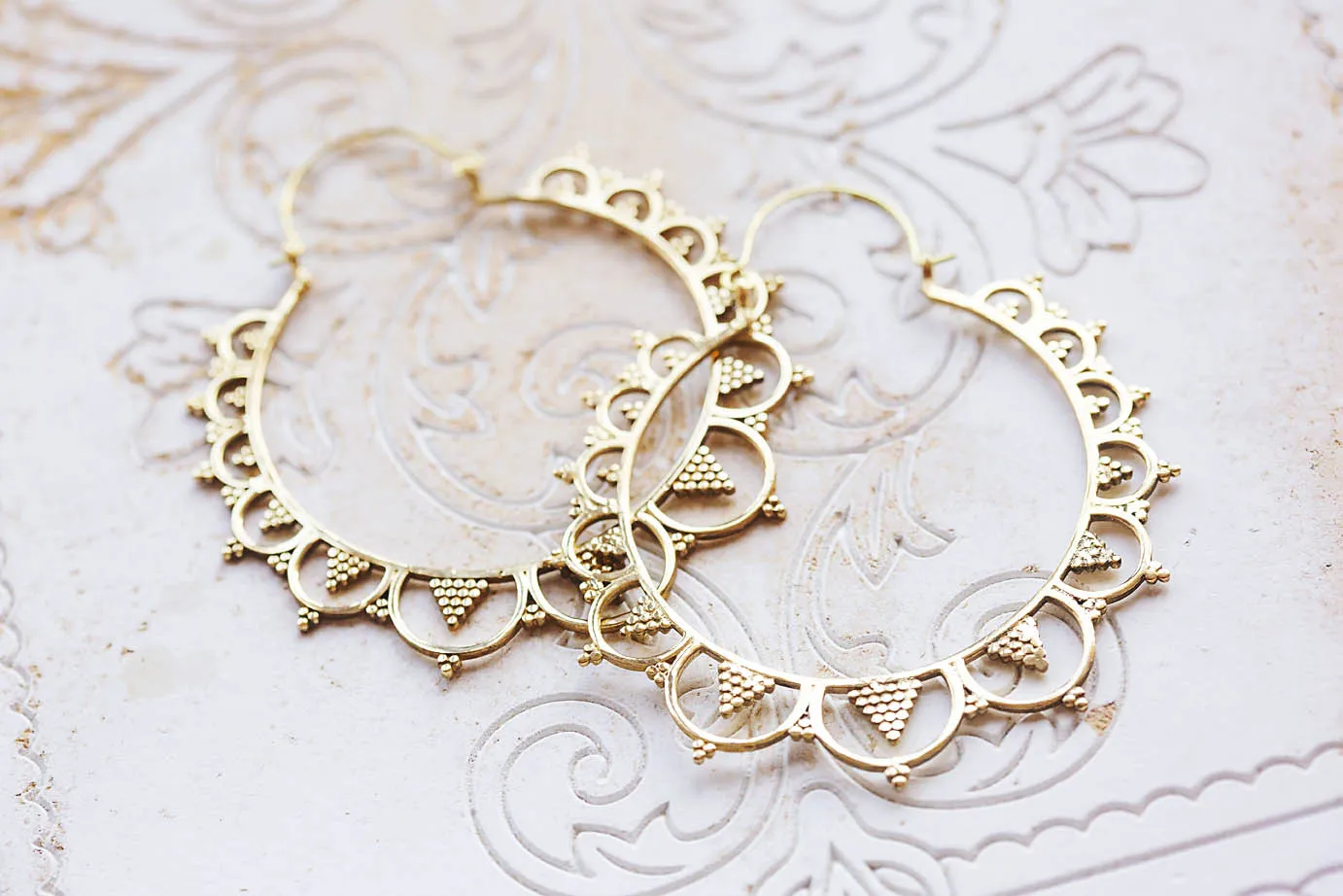 Náušnice orientální lotosy jsou čerstvě dovezené z indického Rádžasthánu, z nádherného města Pushkaru. Tyhle krásné velké ozdobné kruhy plné okvětních plátků lotosu jsou z vysoce kvalitní mosazi, jsou lehké, půvabné a nepřehlédnutelné. Ozdobíš-li se jimi, je to jako kdybys zářila kouskem sluncem zalité Indie.