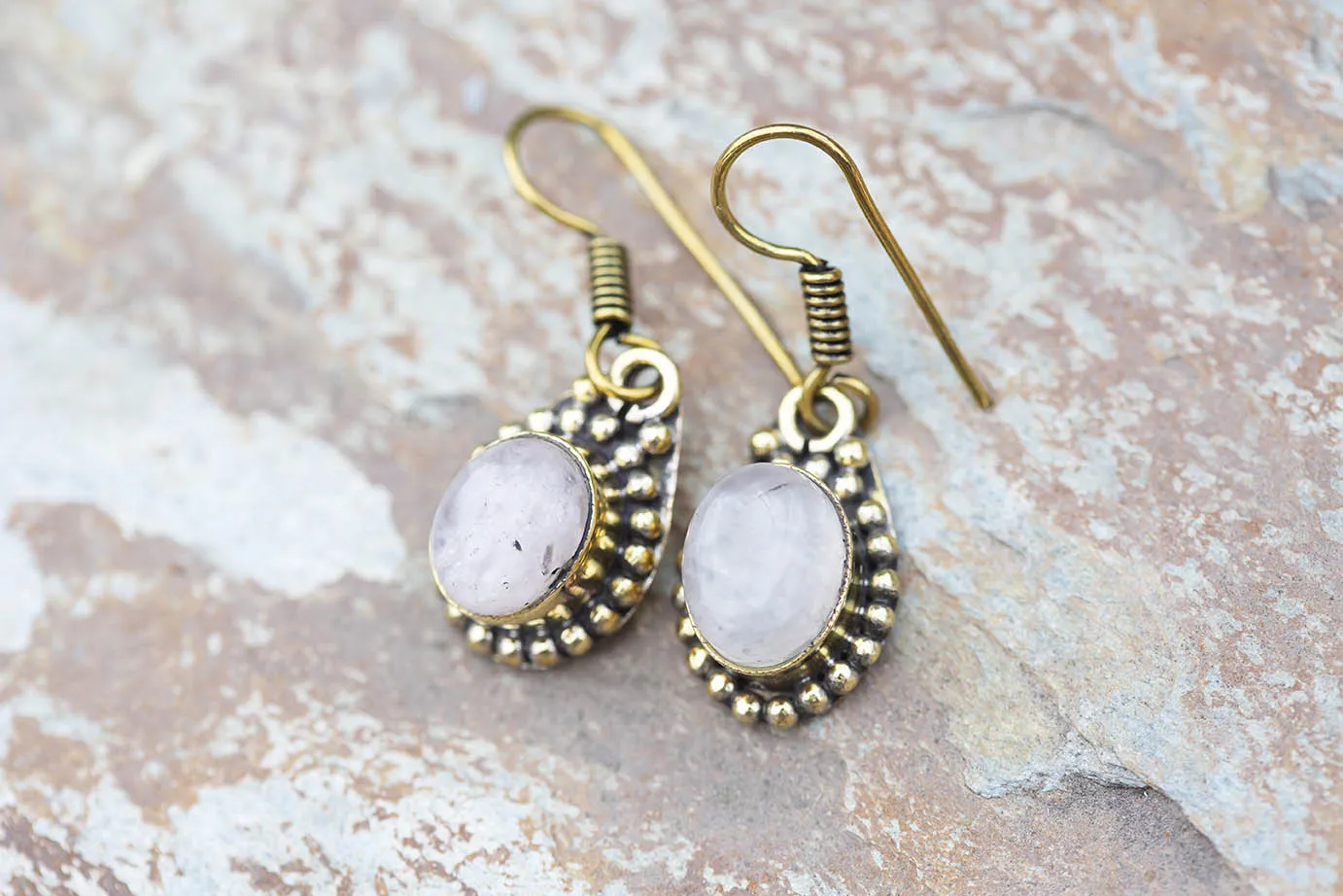 Krásné náušnice s velkým drahokamem v mosazném okruží.