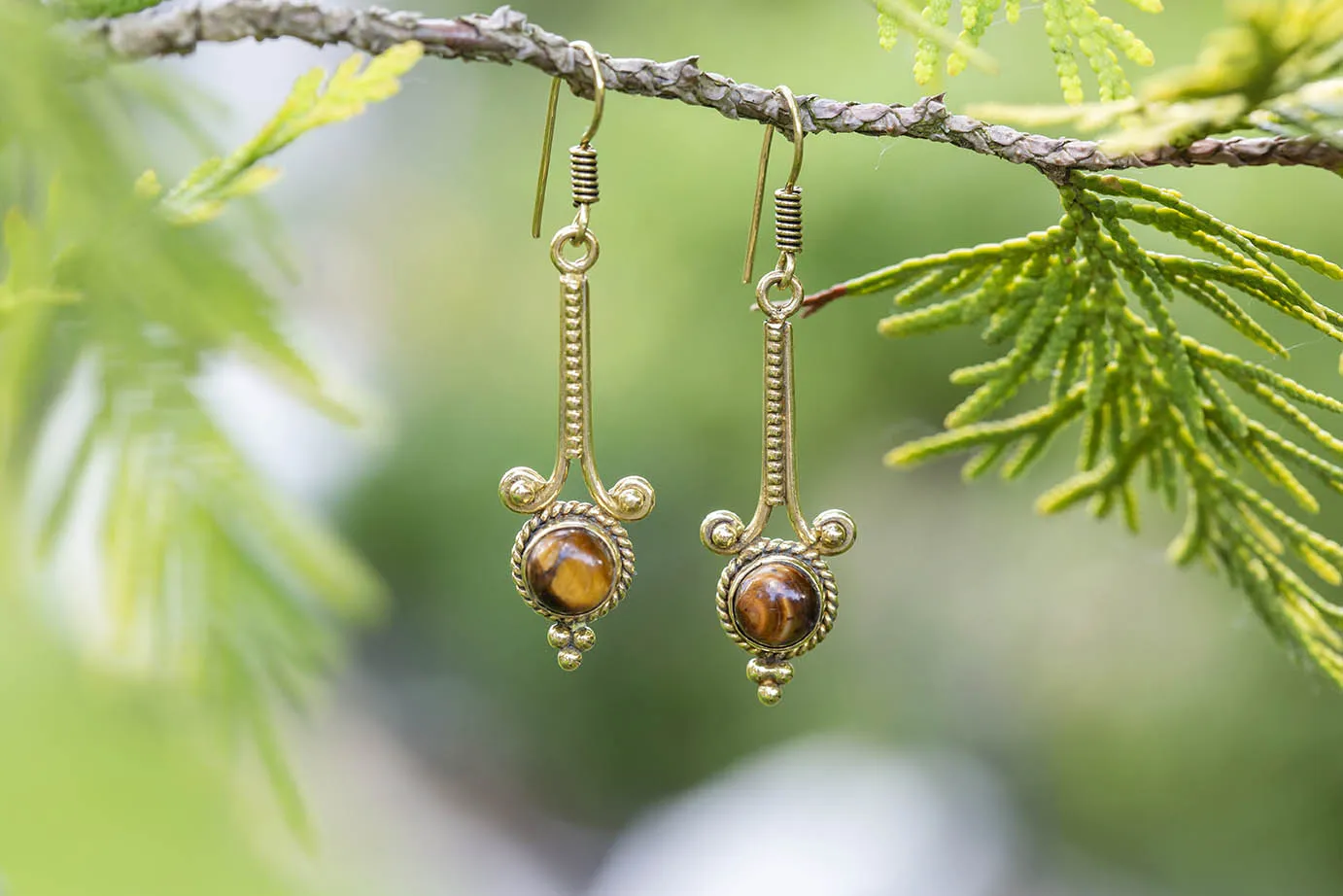 Náušnice s drahokamem - Tygří oko
