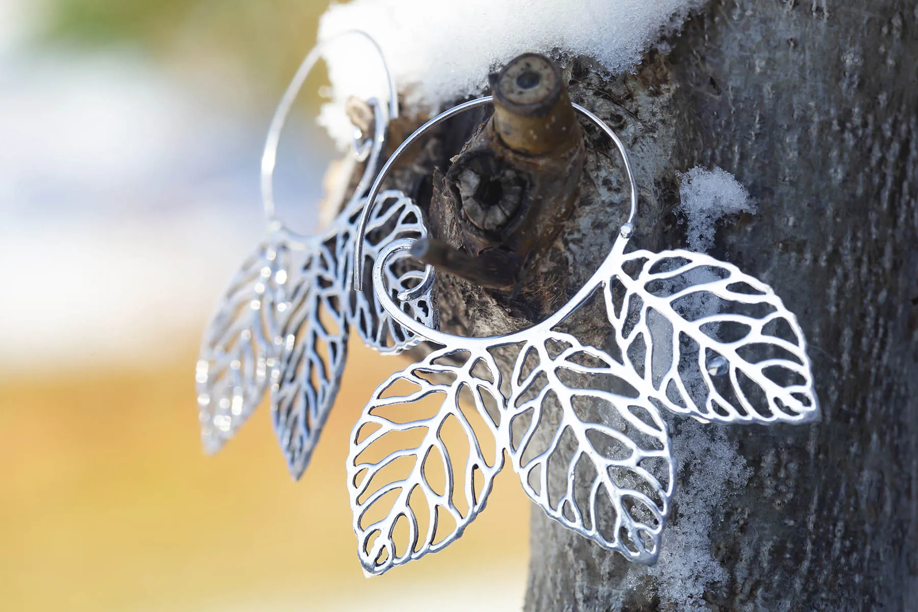 Náušnice tři listy Nápadité neobvyklé náušnice se třemi listy. Délka cca 5,5 cm Hmotnost jedné náušnice cca 6 g celý popis