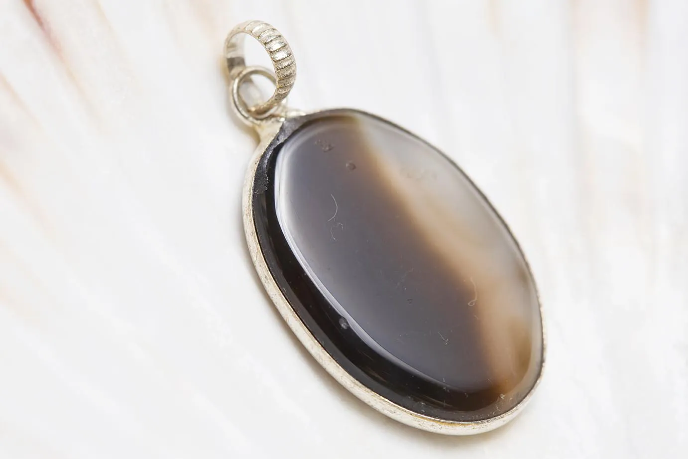 Krásný achát ve dvou barvách zasazený do bílého kovu.