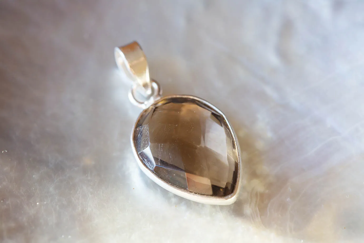 Krásný broušený kouřový křišťál - záhněda ve stříbře.