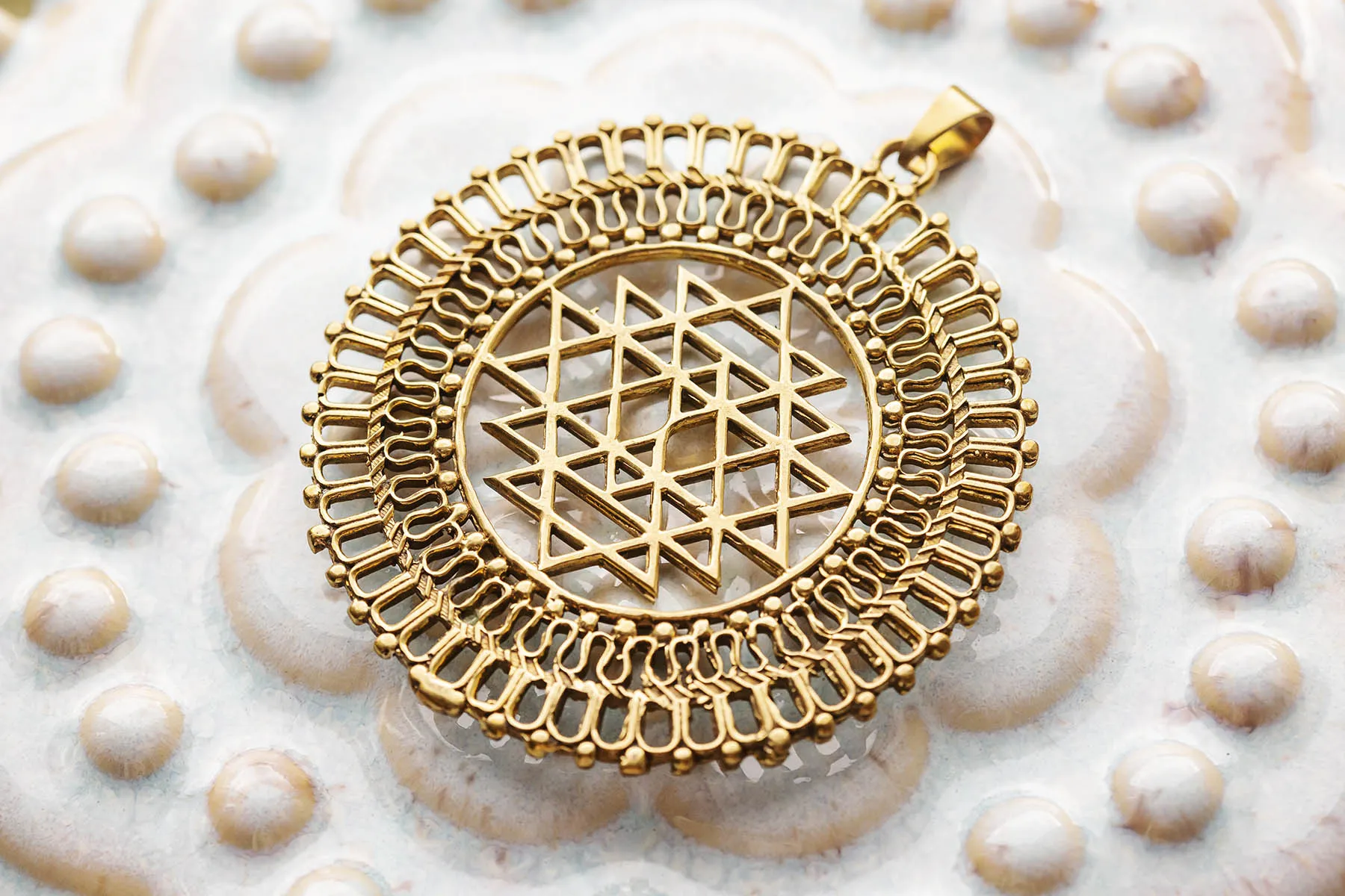 Potřebujete posílit svou harmonii s božstvím a podpořit vyživující zdroje svého života? Pak pro vás je tento Přívěsek šrí jantra. Je vyroben z mosazi a je poměrně masivní. Pokud vás zaujal, neváhejte, máme jen jeden kousek.