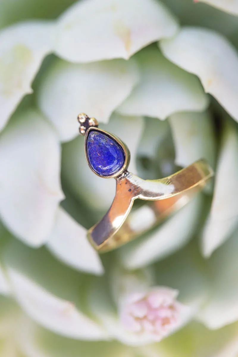 Překrásný mosazný prstem s modrým lapisem lazuli.