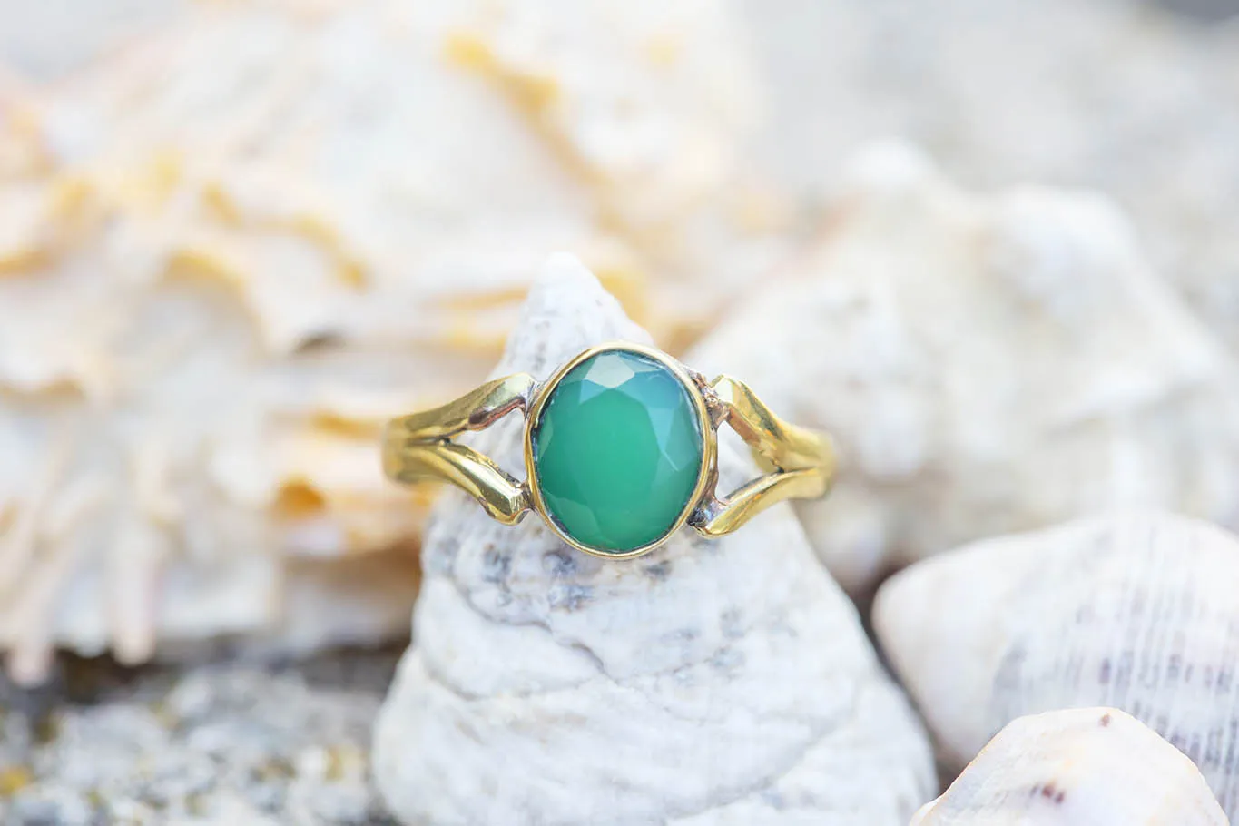 Prsten se zeleným onyxemSkladem 2430 Kč